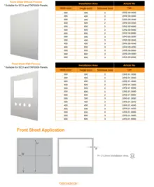 Front sheet list for ECO and TKP2000 panels